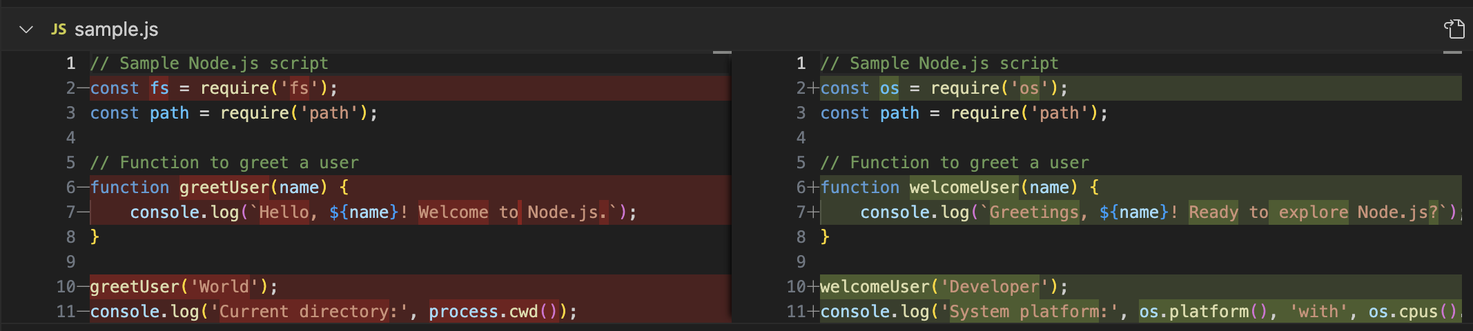 Checkpoint comparison uses Git's underlying diff capabilities to produce structured file differences: